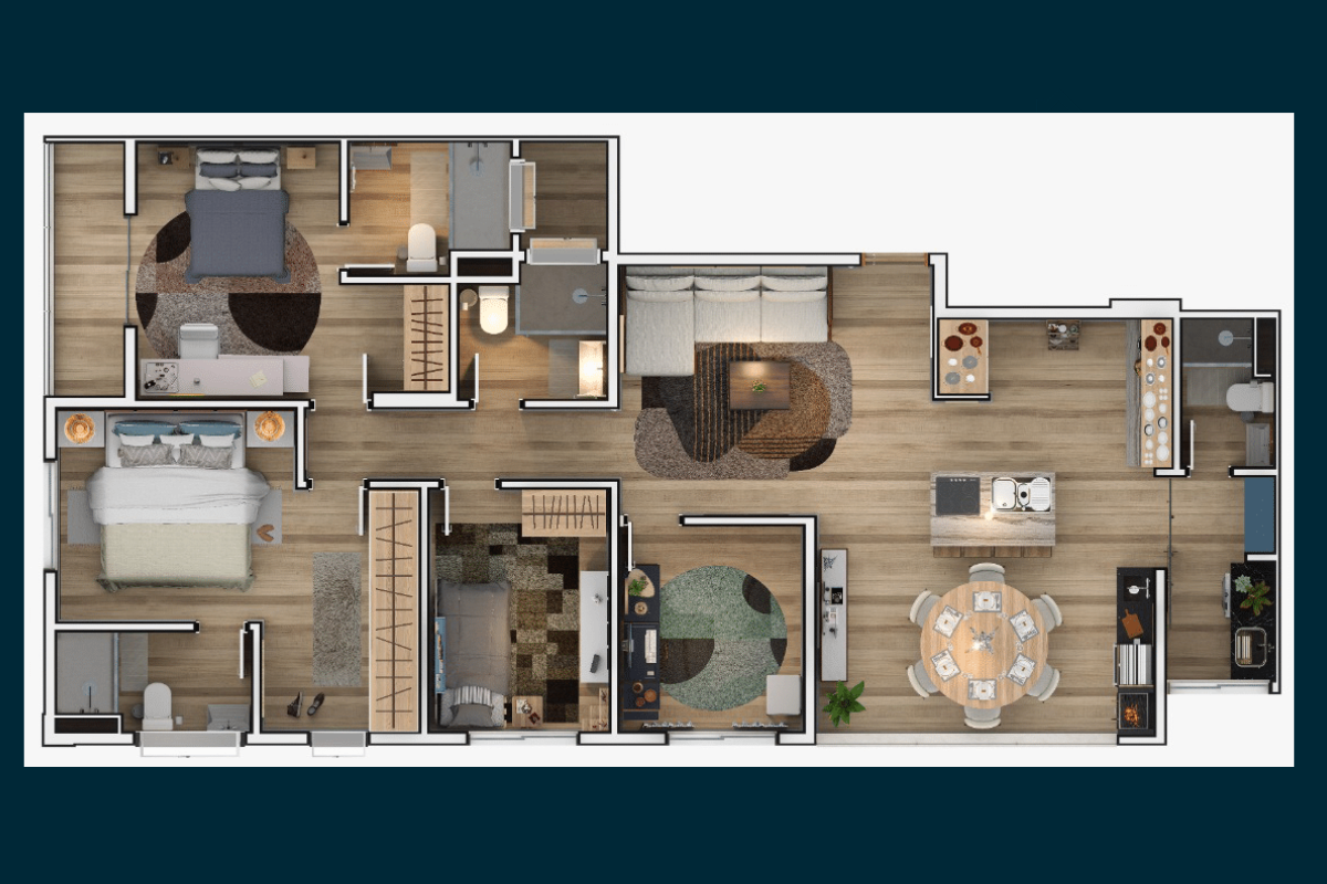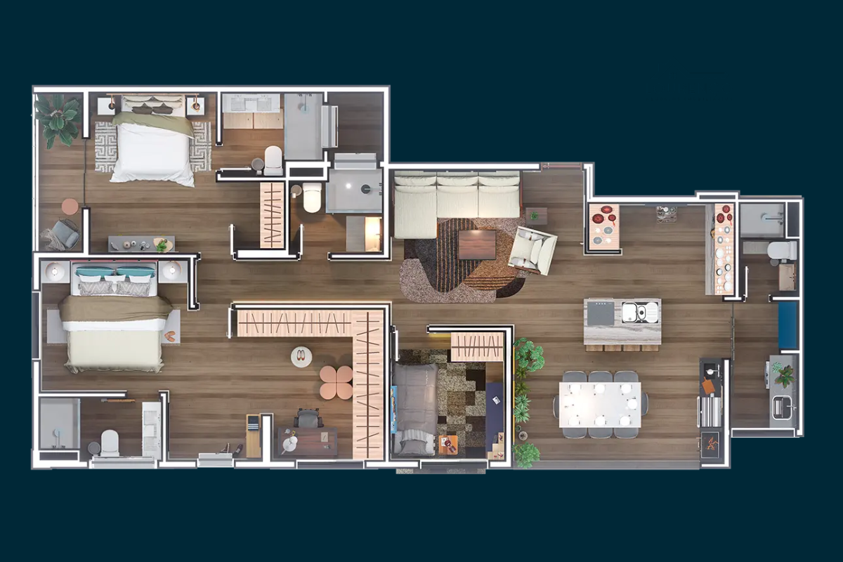 - Plantas generosas com ambientes amplos e integrados, ideais para famílias modernas